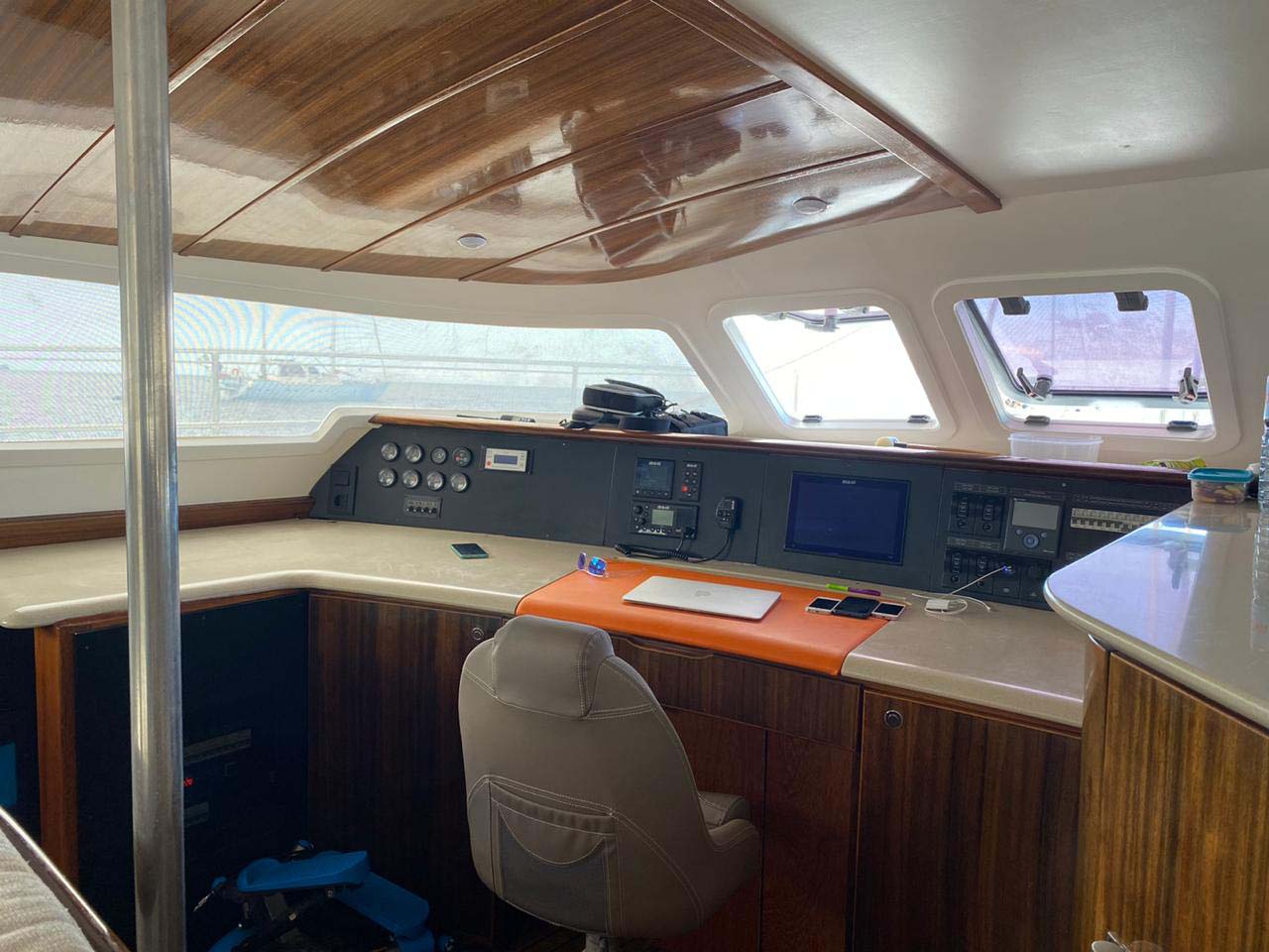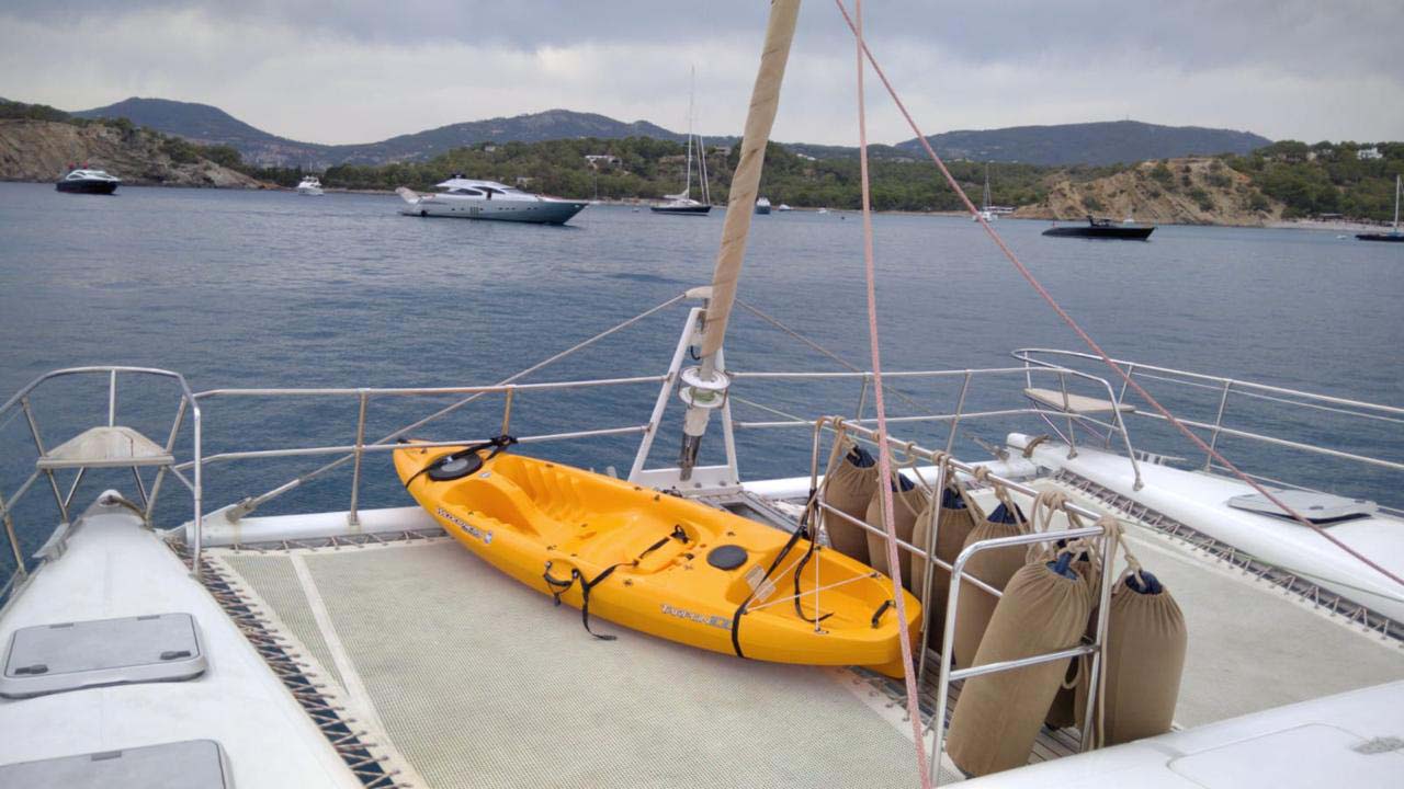In the bow cockpit you can sunbathe or enjoy the sea breeze in its wide nets.