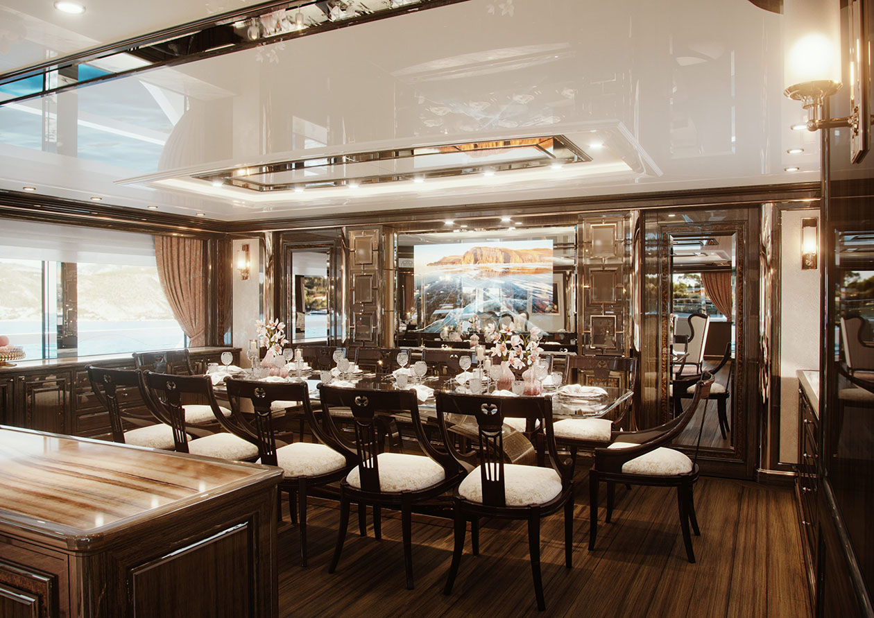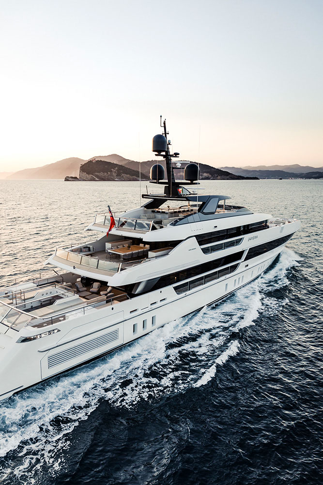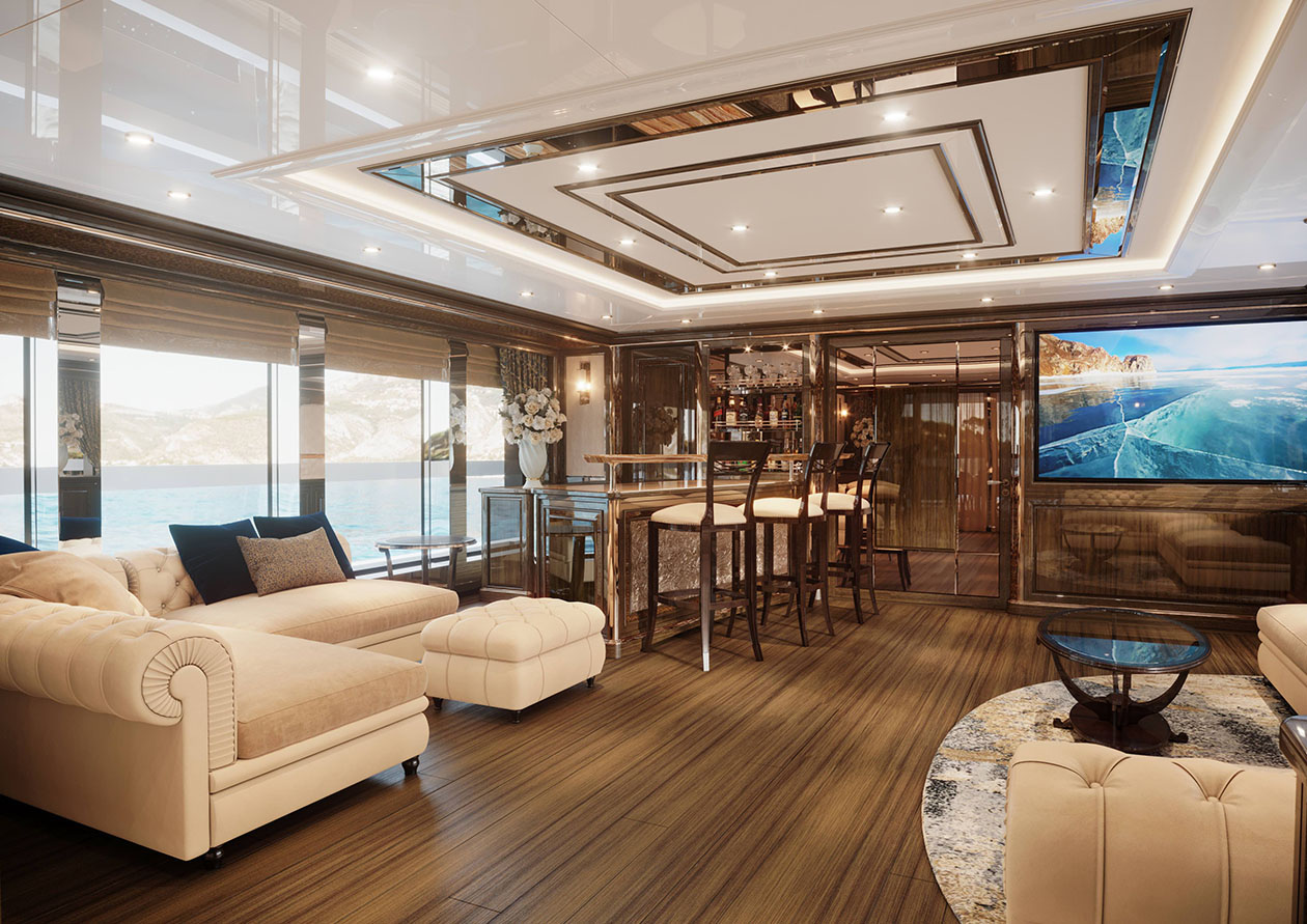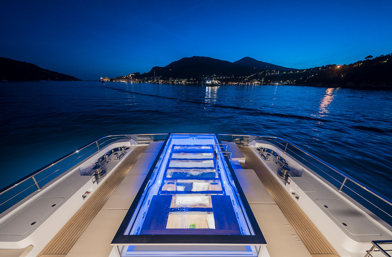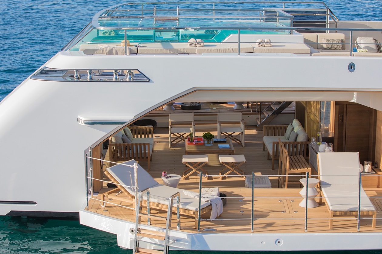 Her 90m2 sundeck has been thoughtfully considered to ensure the entire charter party can make the most out of the space. Guests can stretch out on sunbeds, indulge in cocktails at the bar or slide into the 8-seater jacuzzi pool and cool off while admiring the views.